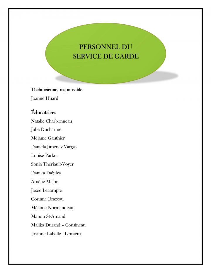 Membre du personnel (Service de garde)